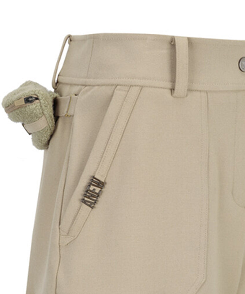 These are the Cabra pants designed for the 5th-grade captain. They feature a metal decoration with the Anew logo on the right side, adding a distinctive detail. The pants include a functional pocket on the back waist, crafted from bouclé material, which serves as a ball case. Additionally, the pants can be removed using a hook, and once detached, they transition into a pair of basic pants.