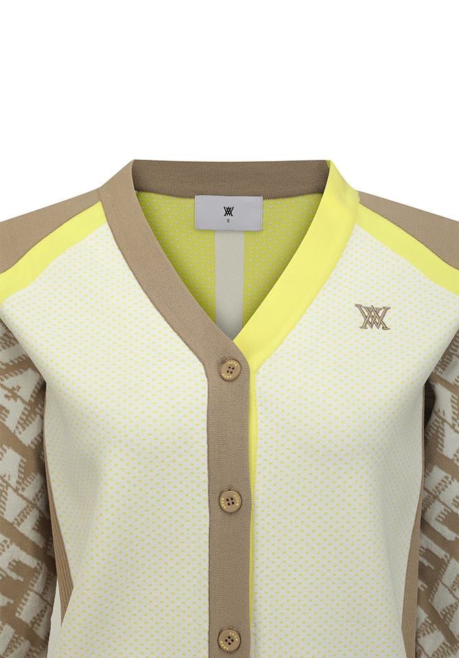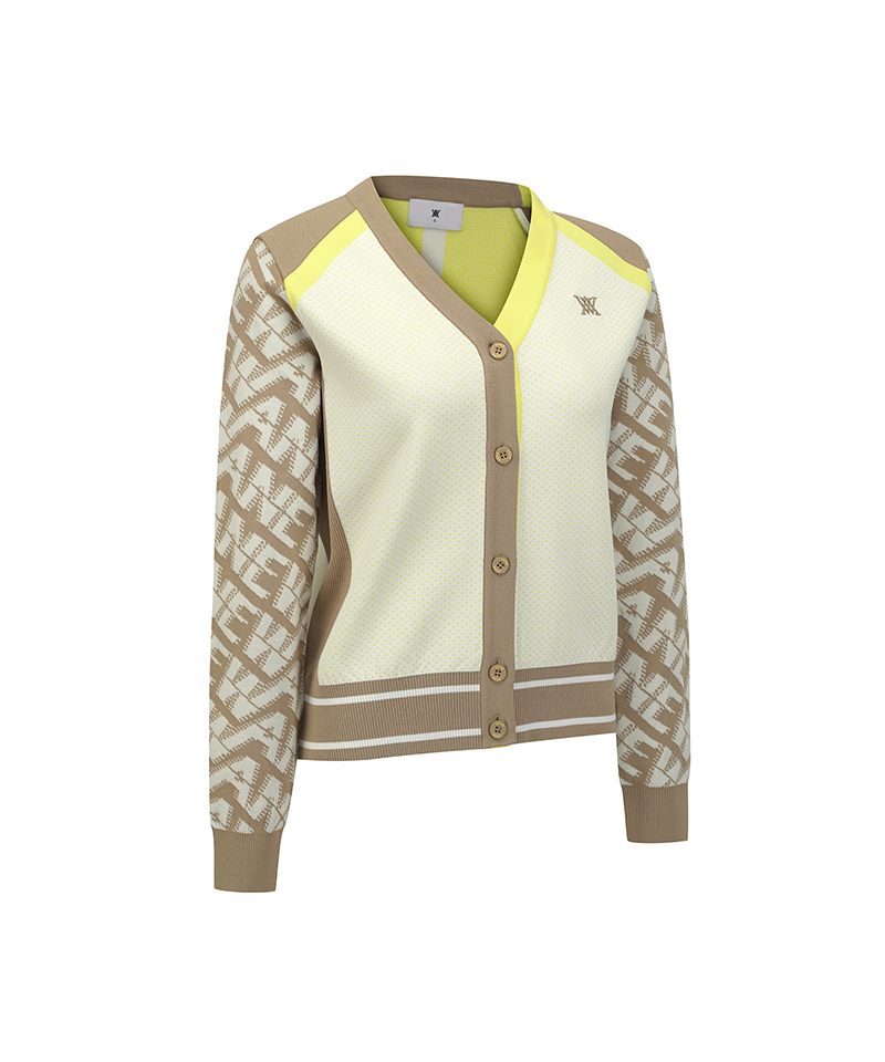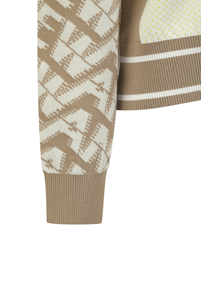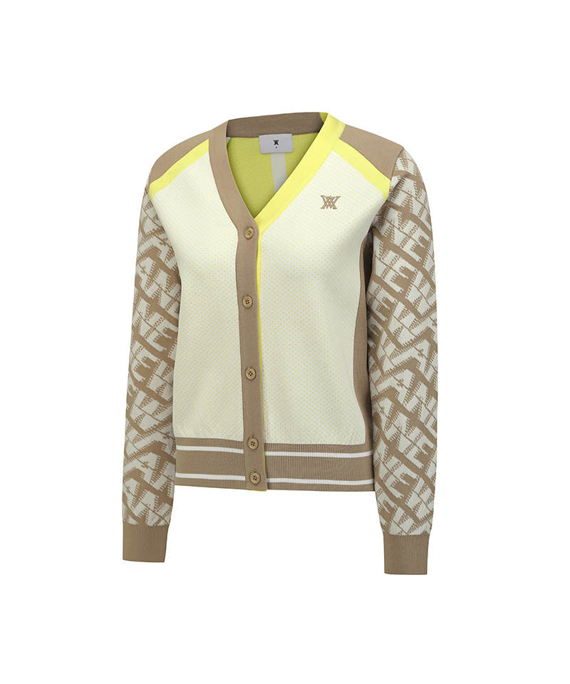 Women's Pattern Blocked Knit Cardigan - Dark Beige