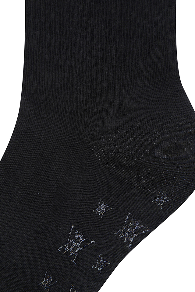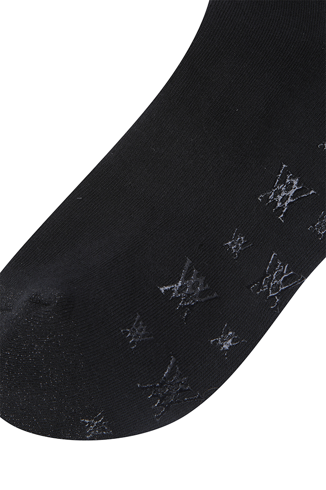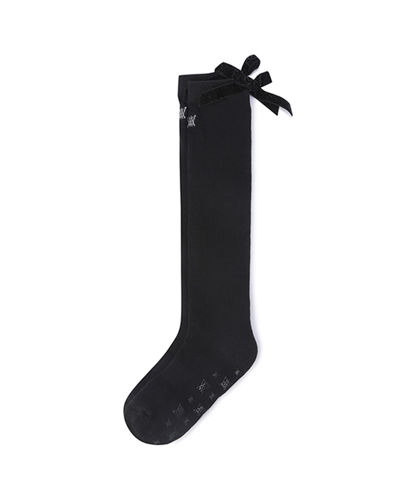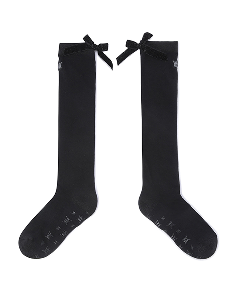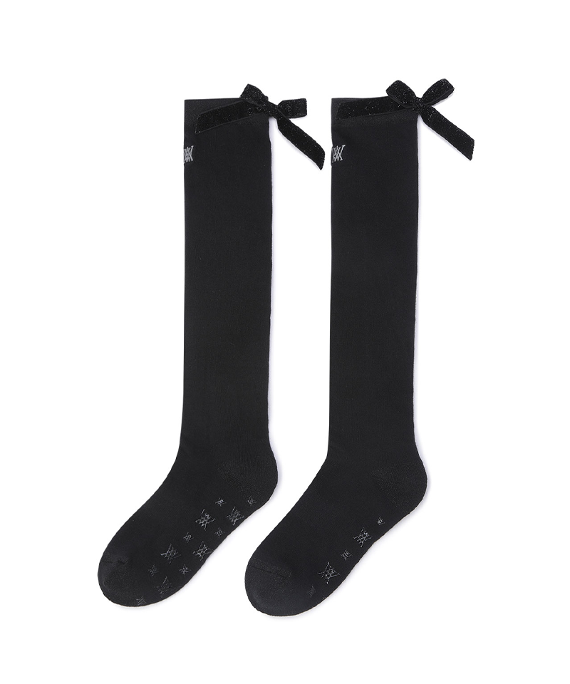 These women’s ankle socks feature a sophisticated design with a black glitter velvet ribbon tape accent on the center back rib band. The non-slip treatment and extension band securely wrap the foot, ensuring a stable and comfortable fit.