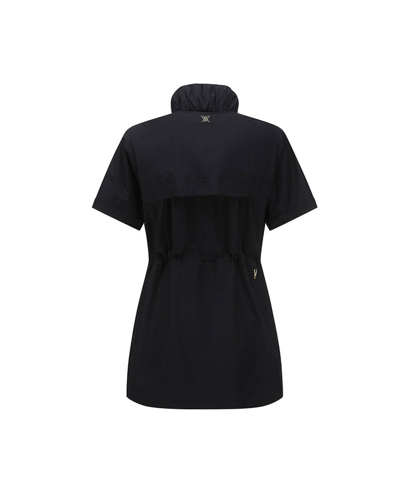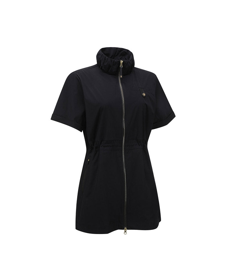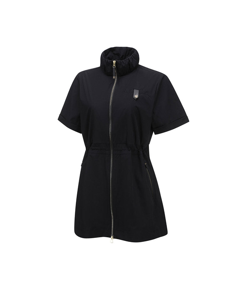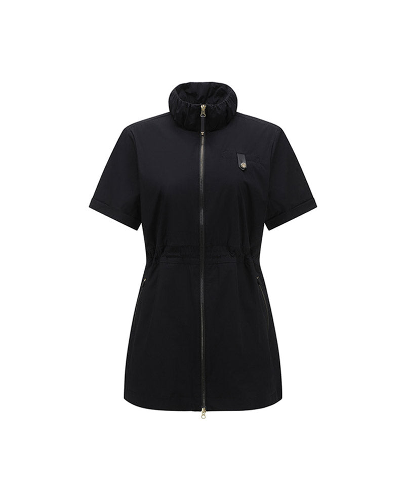 This is a one-piece jacket that can be used 2WAY as a jacket or dress. Imported materials with good stretch are used, and nylon fabric is water-resistant. It features a lightweight fit. Ventilation on the back provides excellent breathability and The banding provides a comfortable fit and at the same time holds the waist line for a slimmer body line. You can direct it. There is a triangular ring on the back waist so you can coordinate it with a ball pocket or belt bag. It is easy to use and the gold zipper and materials add a touch of luxury.