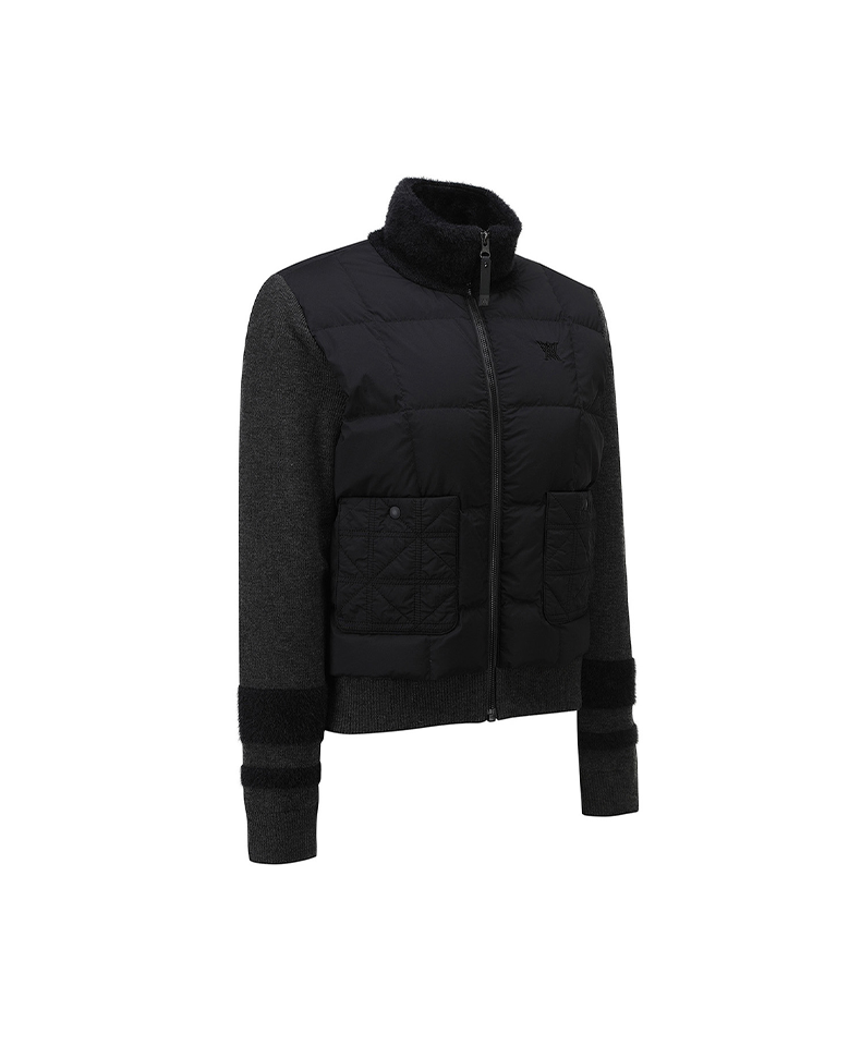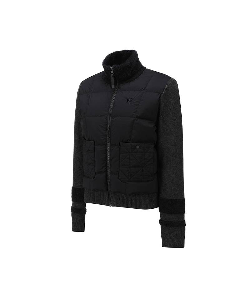 The Women's WI Hybrid High Neck Down Jacket in Black offers warm, lightweight comfort with a high neck to block cold winds. Its blend of down insulation and sturdy materials provides effective warmth and easy movement, perfect for layering or wearing alone on chilly days.