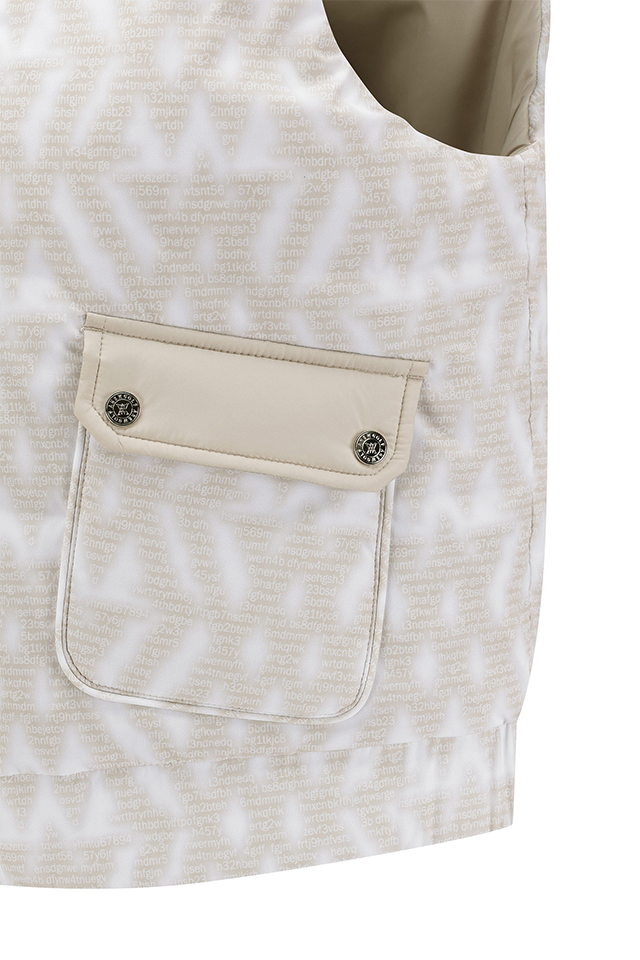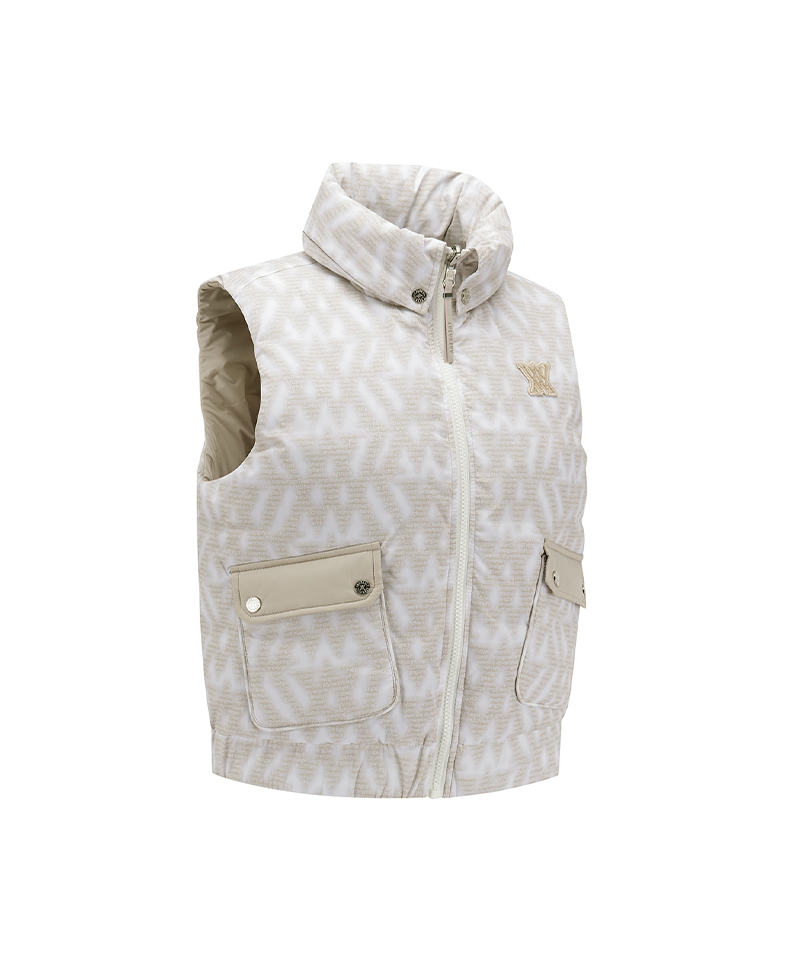 Women's WI Logo Pattern Reversible Down Vest - Beige