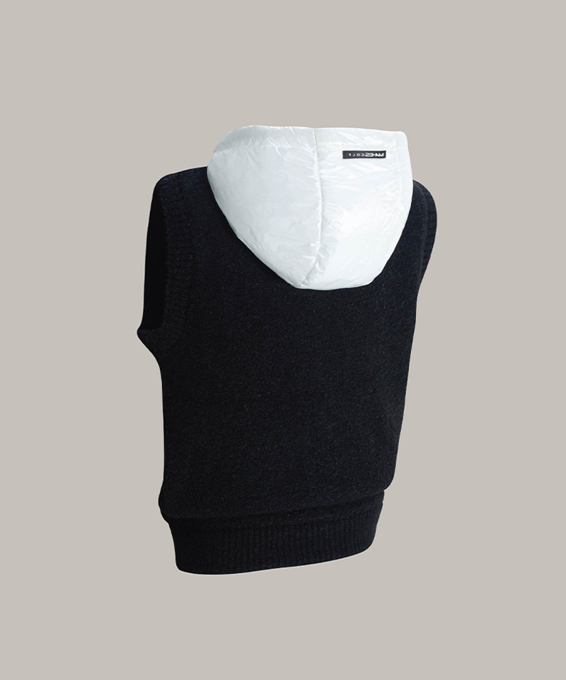 Wool Buckle Padded Hooded Vest - Black